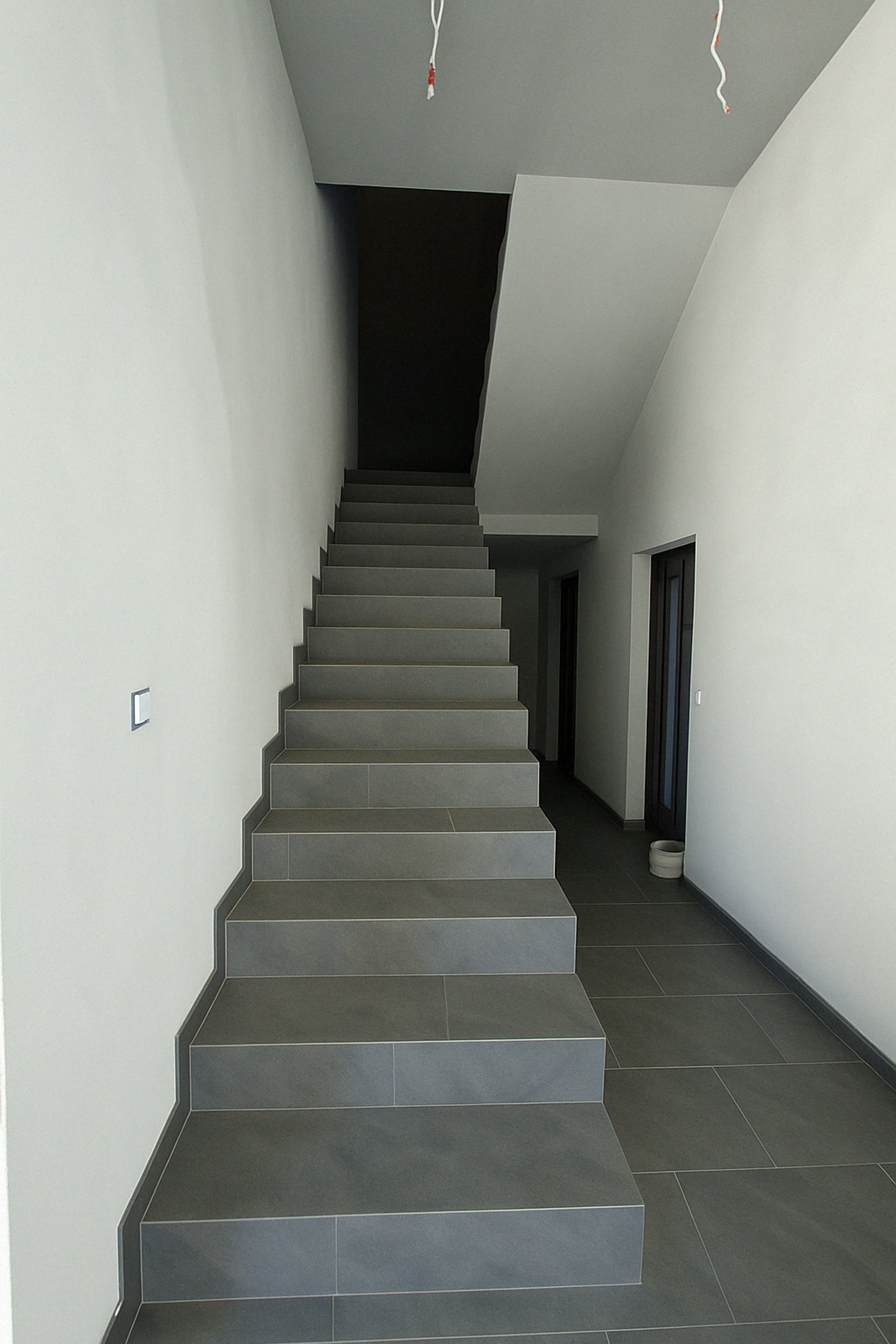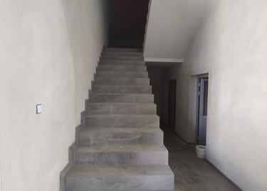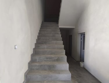 Otynkowanie i wyrównanie klatki schodowej wraz z obróbką narożników, przygotowane pod gładzie i malowanie.