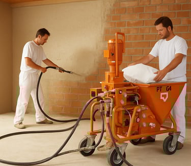 Korzystamy z niezawodnego agregatu PFT G4, dzięki czemu tynki gipsowe i cementowo-wapienne kładziemy sprawnie, równo i bez zbędnych przestojów. Używamy materiałów topowych marek, takich jak Knauf czy Dolina Nidy – żadnych półśrodków.