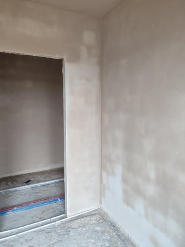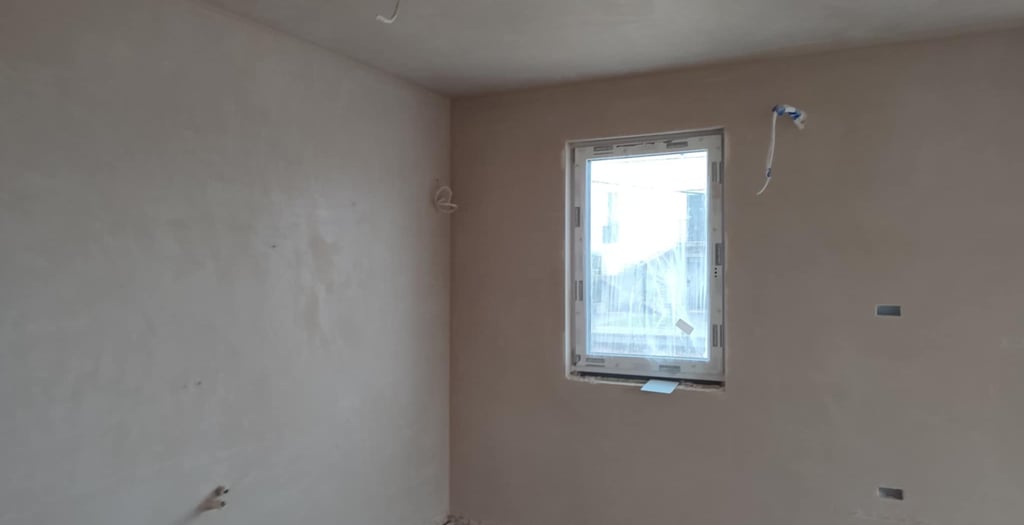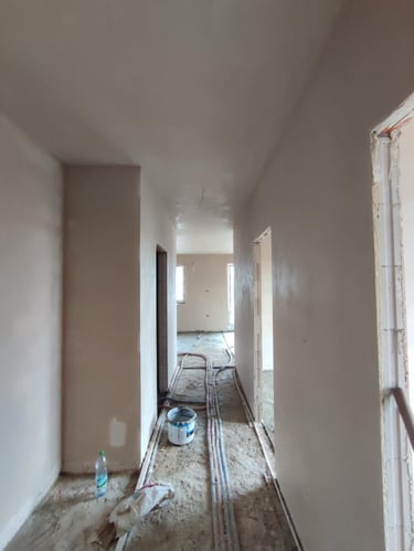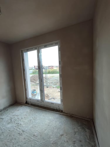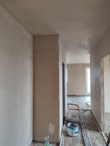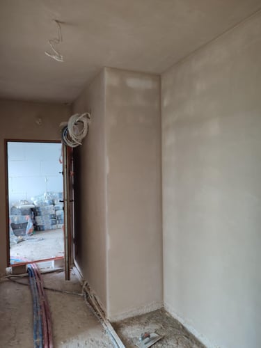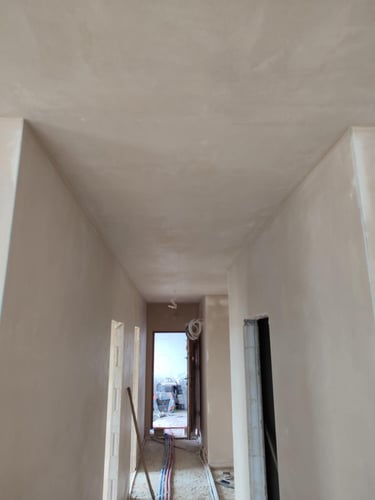 To, co widzisz na zdjęciach, to dopiero etap bazowy, a już teraz wnętrza wyglądają czysto i profesjonalnie. Dzięki naszej technologii tynkowania maszynowego – prace przebiegają sprawnie, a klient otrzymuje perfekcyjnie wyprowadzone kąty, gładką strukturę i pełne przygotowanie pod dalsze etapy wykończenia.